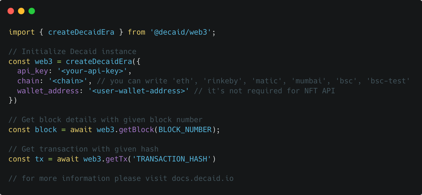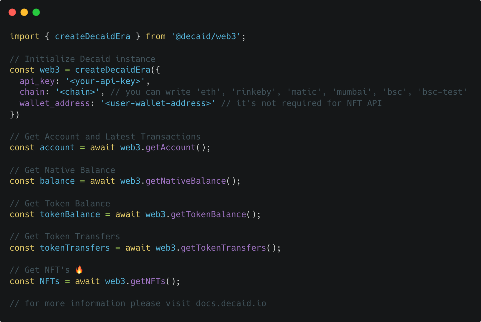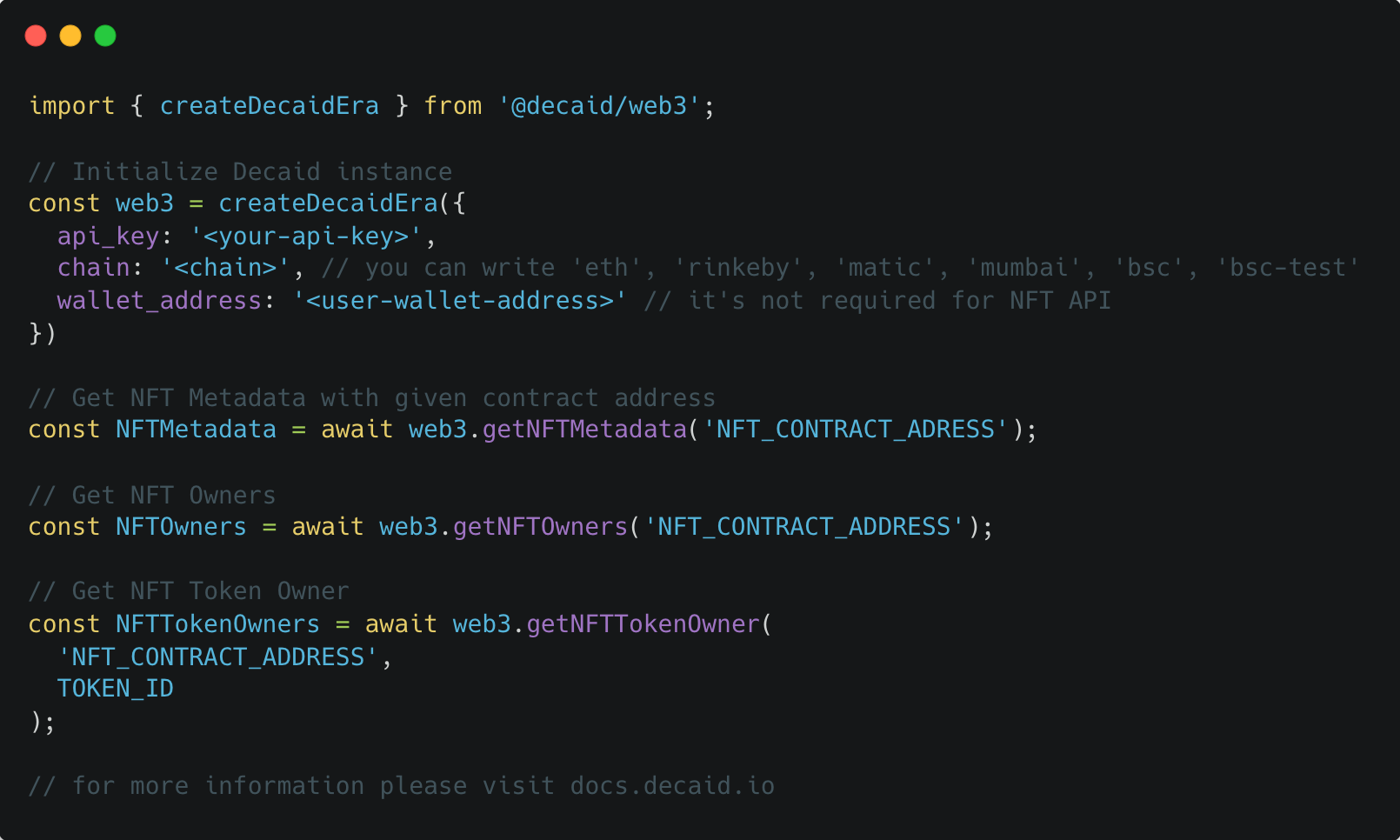 Decaid's NFT API helps the best products on the Web deliver incredible Web3 enabled experiences to their users.